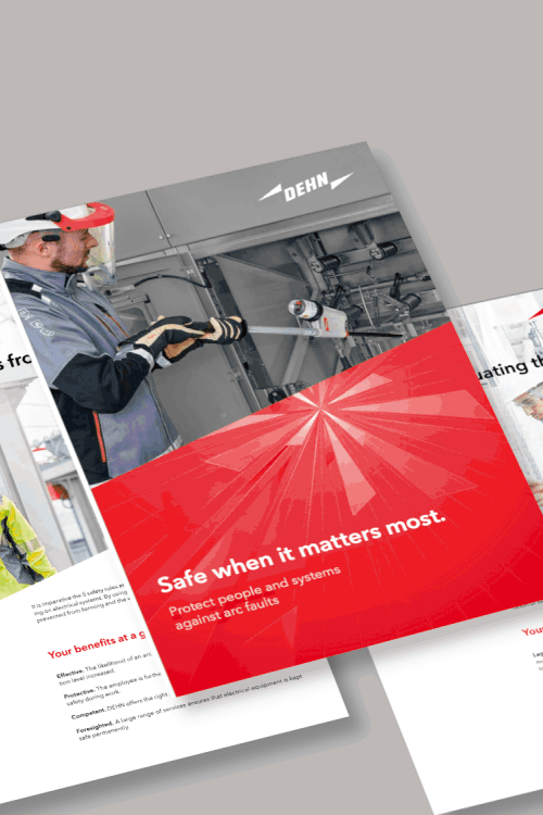 | Flyer | DEHNcare | Reduce the risk of arc faults for employees with PPE. | .pdf 0,6 MB |